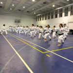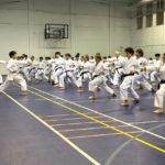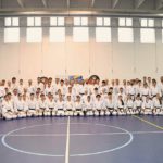 In the following days, Friday, Saturday and Sunday, we had three study groups. The colored belt group 9-4 kyu practiced kihon, gohon kumite, kata Heian shodan and nidan. The brown belt group 3-1 kyu also practiced kihon, kata Heian sandan, yondan, godan, Tekki shodan and jiyu ippon kumite. The black belt group had a high level of study for the kata Gankaku, Jitte, Unsu, Sochin, Tekki nidan and sandan. The kumite training was very well structured, step by step to reach free fighting, with the study of action and reaction to the opponent’s movement, optimal distance and timing.