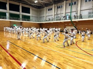 講習では、移動基本を中心に上げ受けの軌道や受ける位置、そして前屈立ち半身時の後ろ足の使い方などを細かくご指導いただきました。形では、技の意味や分解を通して一つ一つの動作を丁寧に確認し、技の理解を深めました。また、組手では自由1本組手・自由組手を実施し、実践的な稽古を行いました。